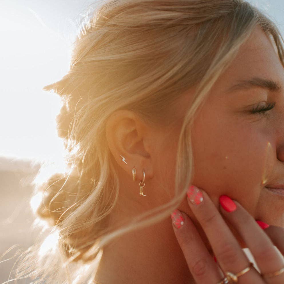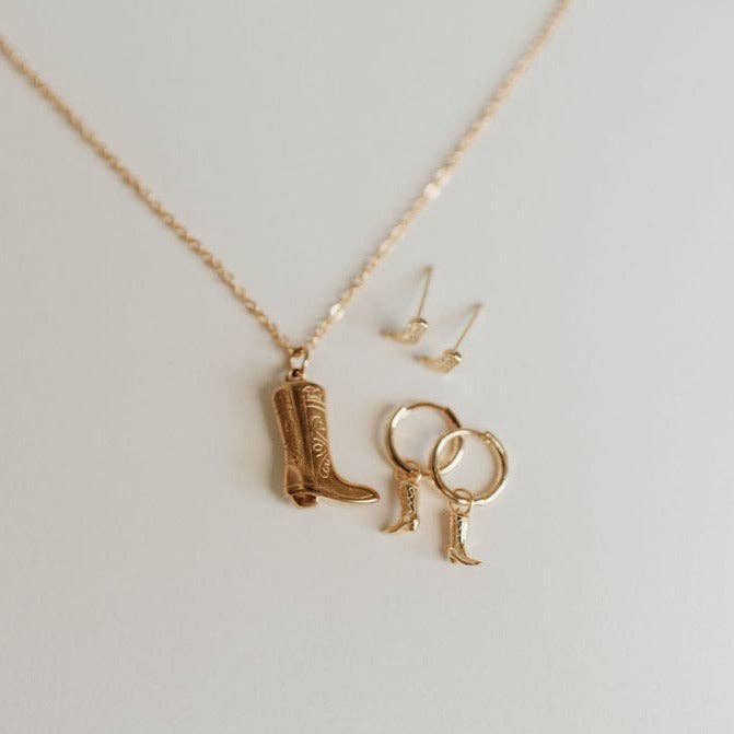 Calling all cowgirls! The Dolly Boot Hoops are the perfect accessory for all our southern gals! Cute little boot charm attached to a dainty, high-quality gold hoop with huggie closure style. Gold vermeil over .925 sterling silver, hypoallergenic, and good for sensitive skin.